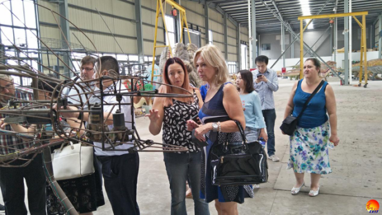 訪問團一行在集團公司執(zhí)行總裁陶建軍的陪同下走進東方彩燈出口基地,參觀集團公司美國、秘魯燈展制作現(xiàn)場,了解仿真恐龍和彩燈制作流程及工藝。訪問團與公司有關人員就城市亮化工程、冬季節(jié)日燈展旅游等展開了積極地交流和討論。訪問團成員對東方彩燈給予了高度評價,并希望燈貿集團與瀑布市的合作突破市場層面,實現(xiàn)多元、多維合作。集團公司董事長劉婭表示燈貿集團將充分借助“2018中加旅游年”的政策機會窗口,搭上兩國文化交流的快車道,向加拿大民眾展示東方彩燈的艷麗繽紛、美輪美奐。