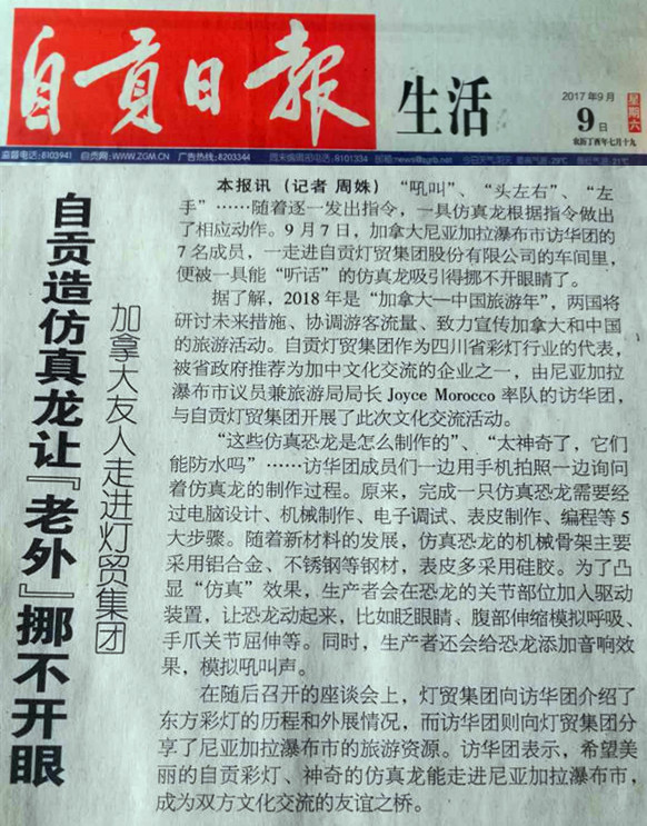為進一步擴大中加雙方經(jīng)貿往來和人文交往,推進“2018中加旅游年”的交流合作。受四川省人民政府邀請,尼亞加拉瀑布市政府訪問團一行7人于9月7日-9日到自貢燈貿集團、四川藝思特彩燈文化傳播有限公司進行訪問考察。