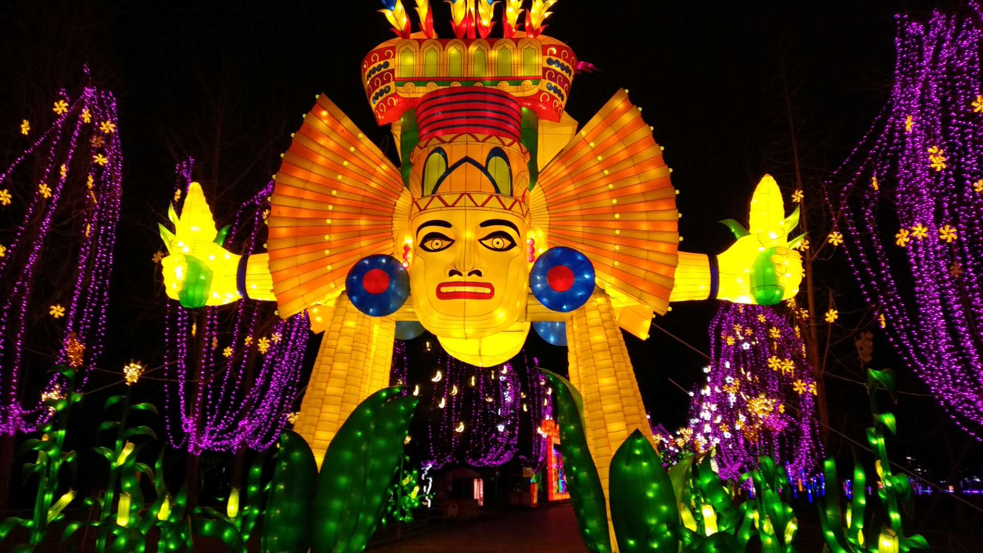 “瑪雅之光”是本屆太陽節(jié)燈組的又一大亮點(diǎn)。首次運(yùn)用彩燈的手法,再現(xiàn)神秘的瑪雅世界,引領(lǐng)游人穿越時(shí)空,欣賞這一古老文明留贈(zèng)現(xiàn)世之美。作為中美洲熱帶叢林中悄然萌芽卻又戛然而止的神秘文明,瑪雅的象形文字、宇宙觀念、創(chuàng)世傳說、神靈崇拜及其精神信仰都成為燈組著力表現(xiàn)的內(nèi)容。