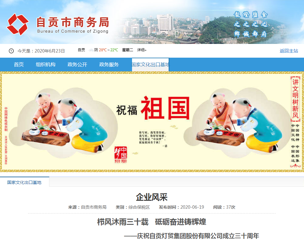圖二:自貢市文化旅游局微信公眾號(hào)自貢文化旅游慶祝自貢燈貿(mào)集團(tuán)股份有限公司成立三十周年