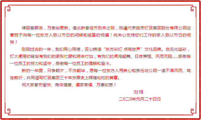 自貢燈貿(mào)集團(tuán)股份有限公司董事長劉婭 新春致辭