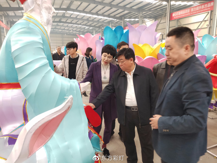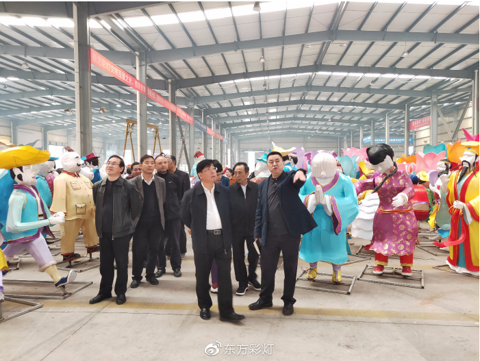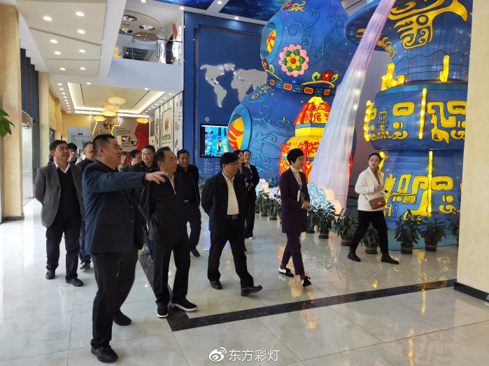 燈貿(mào)集團(tuán)董事長劉婭、執(zhí)行總裁陶建軍陪同考察團(tuán)一行參觀了東方彩燈(出口)基地,觀摩彩燈制作過程,詳細(xì)了解了彩燈工藝流程。