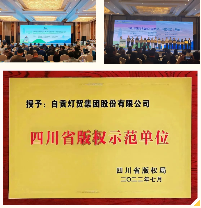 在第23個世界知識產(chǎn)權(quán)日來臨之際,由中國版權(quán)協(xié)會、四川省委宣傳部版權(quán)局主辦,綿陽市委宣傳部承辦的“四川省2023版權(quán)宣傳周暨版權(quán)示范交流活動”于2023年4月25日在綿陽舉行,活動以“推動版權(quán)創(chuàng)新創(chuàng)造 助力文化自信自強(qiáng)”為主題,以線上線下聯(lián)動方式同步推出。活動當(dāng)天,省版權(quán)局為2021至2022國家級、省級版權(quán)示范單位和示范園區(qū)(基地)授牌。自貢燈貿(mào)集團(tuán)股份有限公司參加了活動,并獲頒“四川省版權(quán)示范單位”榮譽(yù)稱號。
